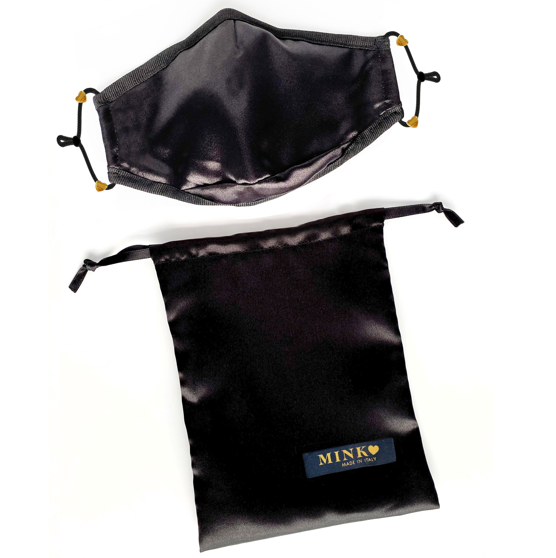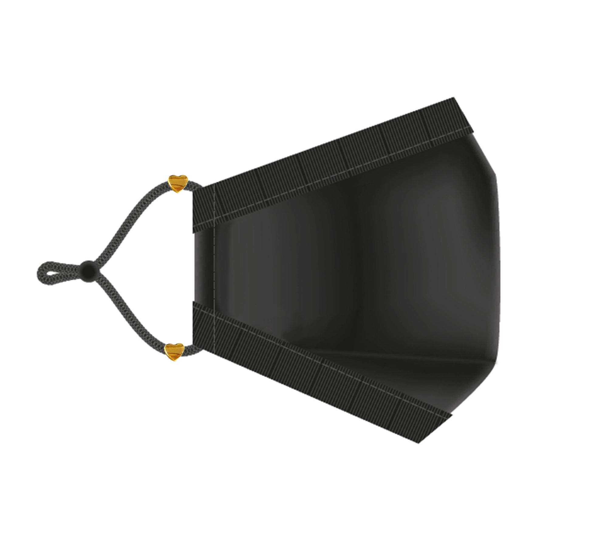 Outer luxury satin fabric with a protective hepa lining and a back layer of soft organic cotton. Adjustable ear straps. Glorious golden heart details.