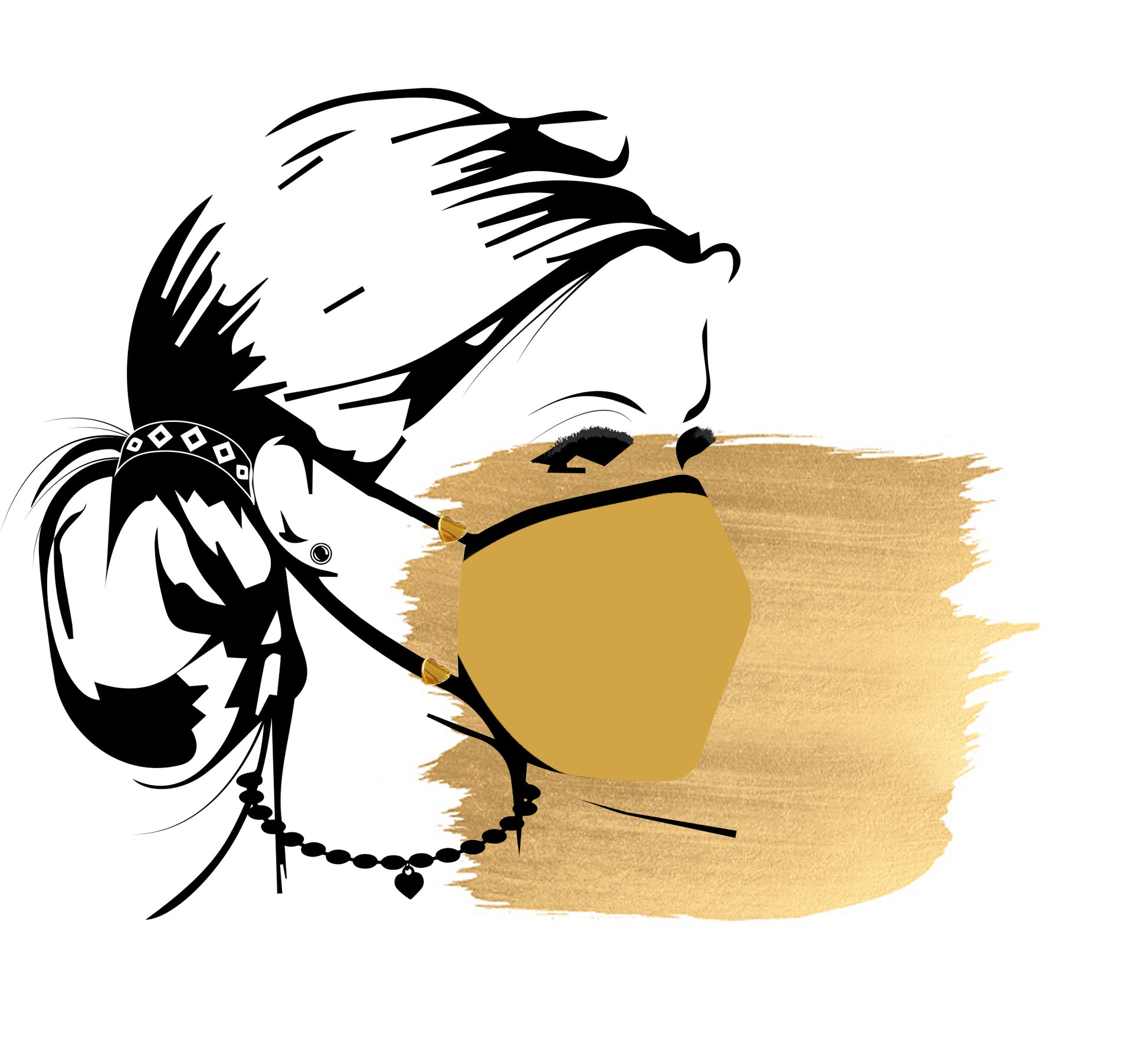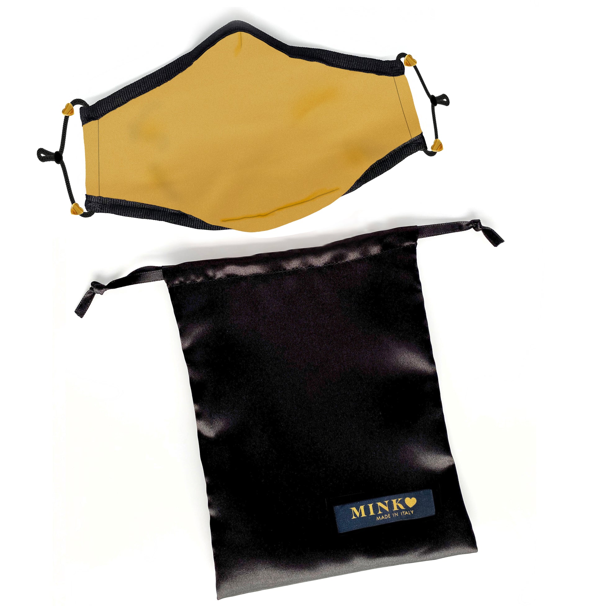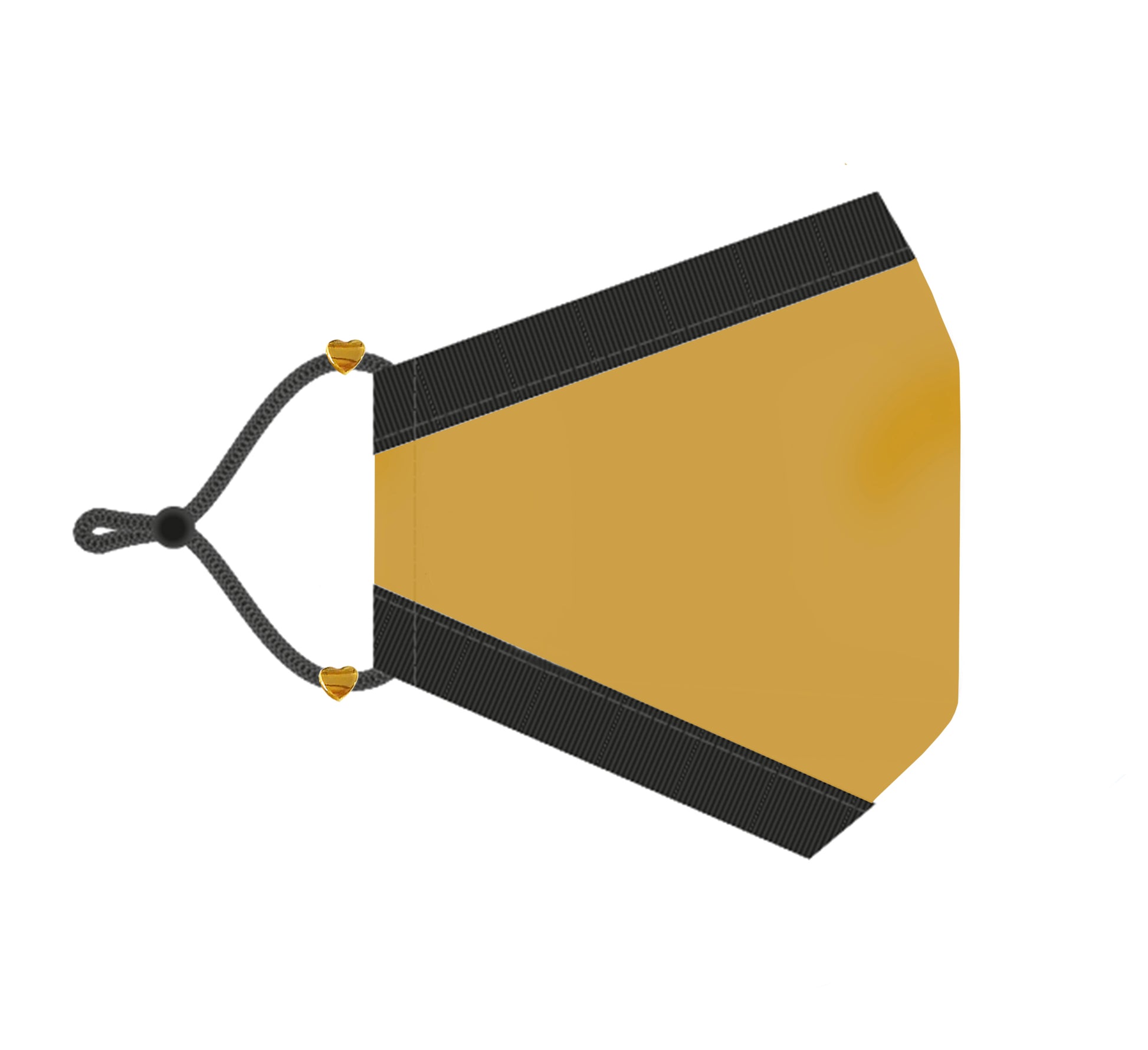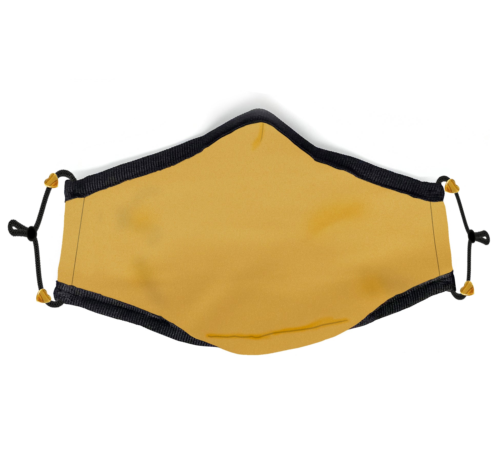 Outer luxury satin fabric with a protective hepa lining and a back layer of soft organic cotton. Adjustable ear straps. Glorious golden heart details.