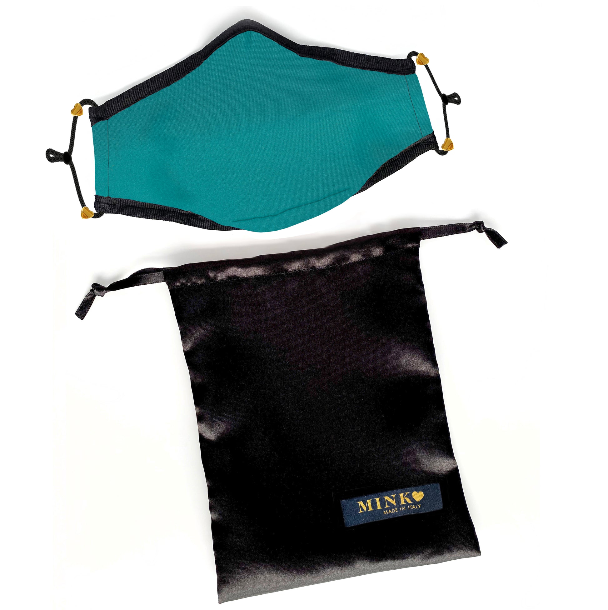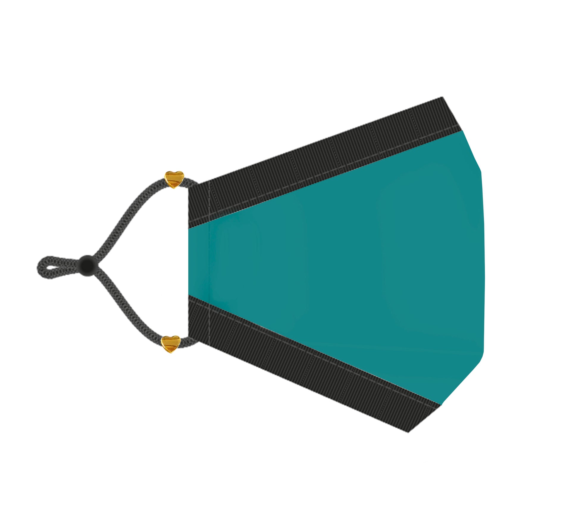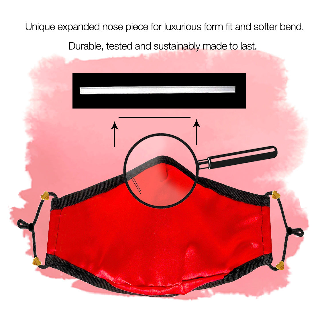 Outer luxury satin fabric with a protective hepa lining and a back layer of soft organic cotton. Adjustable ear straps. Glorious golden heart details.